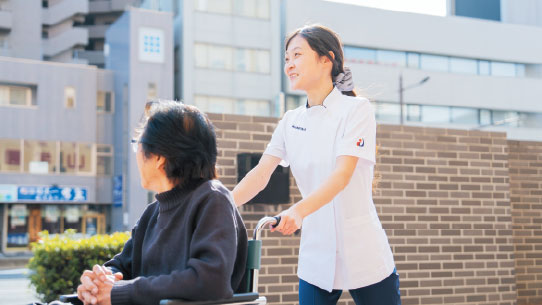 患者さまの病気・ケガ・老化などによる後遺症や障がい、生活の中で感じる不便さから、「その人らしい」生活を取り戻すために心と身体の治療と訓練を行い、目的達成のため、寄り添い、サポートを行います。
