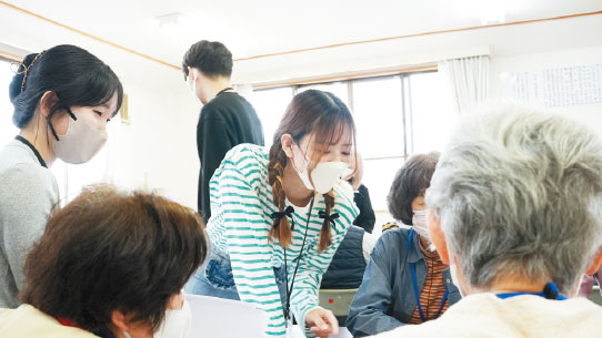 地域における作業療法の役割や、地域に携わる様々な人との関わり方などを、公民館などで対象者の方々と接しながら学びます。「地域」に関する幅広い知識を学び、対象者の方の生活を手助けする力を身につけます。